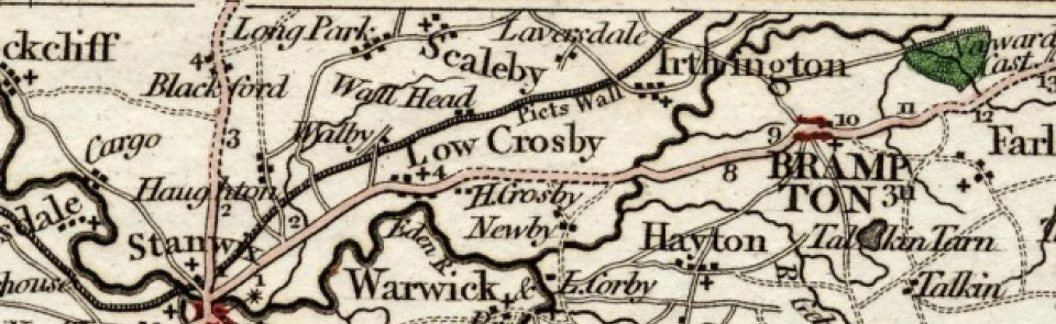Ancient parish in Eskdale ward, Cumberland, comprising townships of High Crosby, Low Crosby and Walby. Brunstock was detached part of Crosby parish (see Stanwix). Crosby-on-Eden CP abolished 1934; part subsumed into Stanwix CP, part to Wetheral CP.