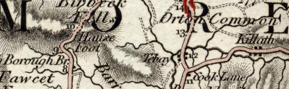 hill farming. Tebay village grew on arrival of railway with Tebay station (opened 1852; closed 1968) at convergence of Lancaster & Carlisle Railway (opened 1846) and South Durham & Lancashire Union Railway (opened 1861). Market established by 1880s with market hall near station. Small industrial estate at Tebay goods yard and engine sheds after railway closure. For service stations on M6 see Orton.